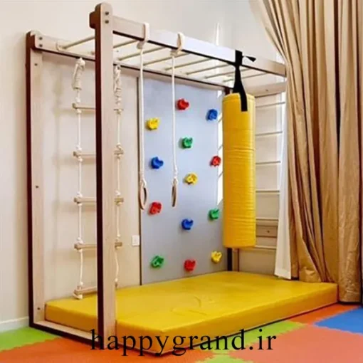 ادونچر چوبی جیم باکس ، یک بازی حرکتی مناسب مهد کودک ، خانه بازی و منازل می باشد و برای تقویت مهارت حرکتی ، آموزش حفظ تعادل و قدرت بدنی کودک بسیار مفید می باشد . ادونچر چوبی جیم باکس شامل صخره نوردی با گیره های رنگی ، نردبان سقفی ، حلقه ژیمناستیک ، کیسه بوکس نرم و ایمن و طناب و تور نردبانی می باشد . ادونچر چوبی جیم باکس از ام دی اف درجه 1 تولید شده و دارای یک تشک نرم در قسمت زیرین کار است که ایمنی کودک را هنگام بازی با سازه تامین می کند.