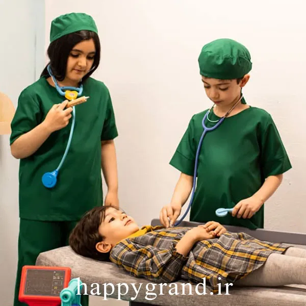 ست لباس مشاغل 5 تکه کودک در کنار خانه مشاغل ، فضای جذابی را برای تعامل کودکان با هم و تمرین شغل های مختلف فراهم می آورد