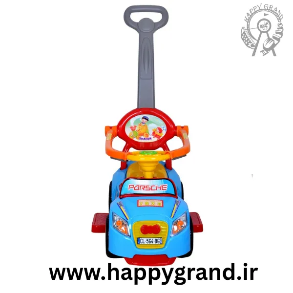 ماشین چهار چرخه کودک مدل پورشه مناسب کودکان بالای یک سال است و دارای محافظ صندلی می باشد که از افتادن کودک از روی صندلی جلوگیری میکند . قطعات این محصول به راحتی به هم متصل می شوند و در کمترین زمان ممکن ماشین به اسانی سر هم می شود .