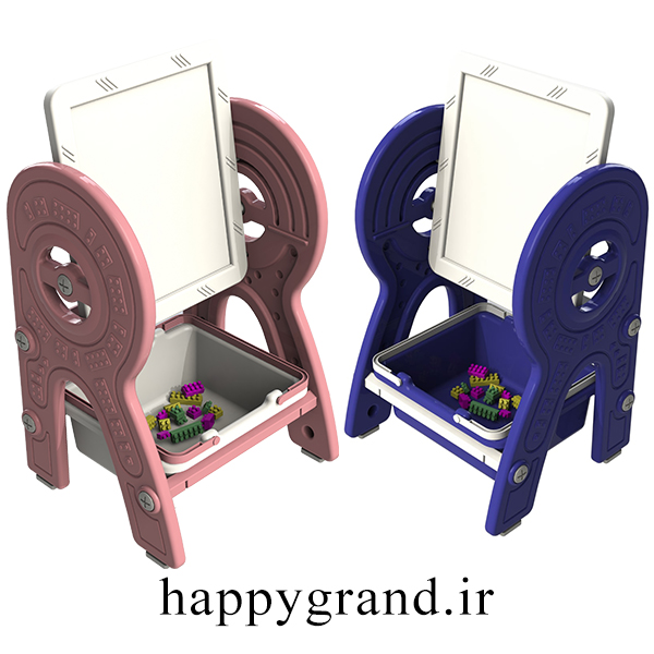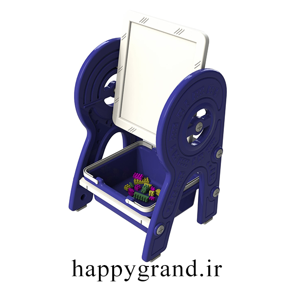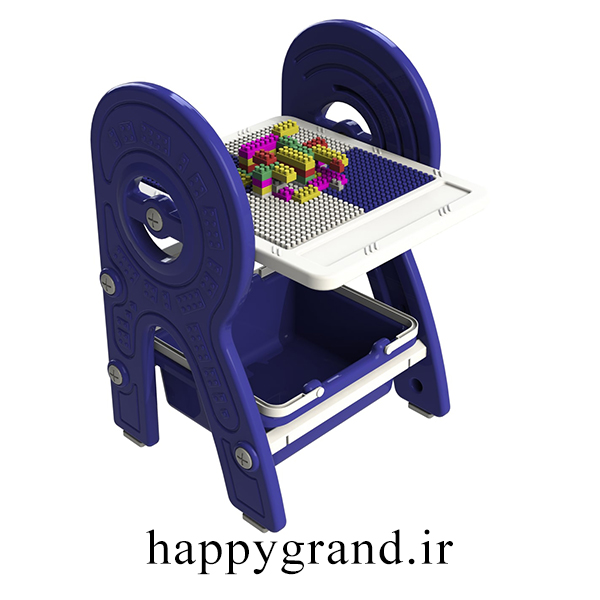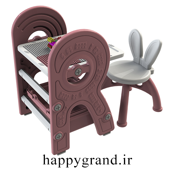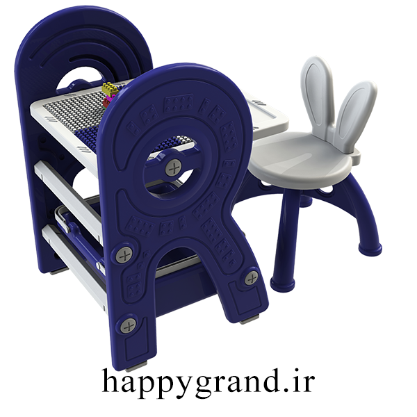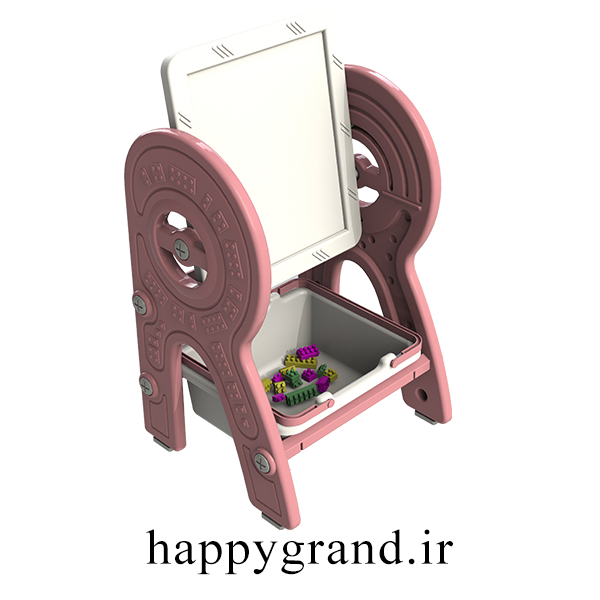 یک سمت صفحه میز، سطح معمولی برای مطالعه و نوشتن است که صفحه وایت برد روی کار نصب شده و سمت دیگر رویه میز صفحه لگو میباشد که با چرخش صفحه قابل استفاده میشود.